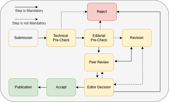 A summary of the editorial process is given in the flowchart below. Authors should take note of the technical pre-check procedure by the editorial office to prevent a desk reject.